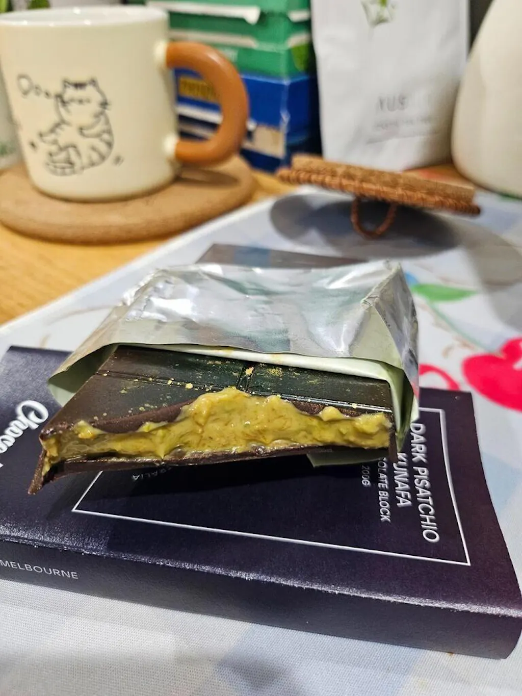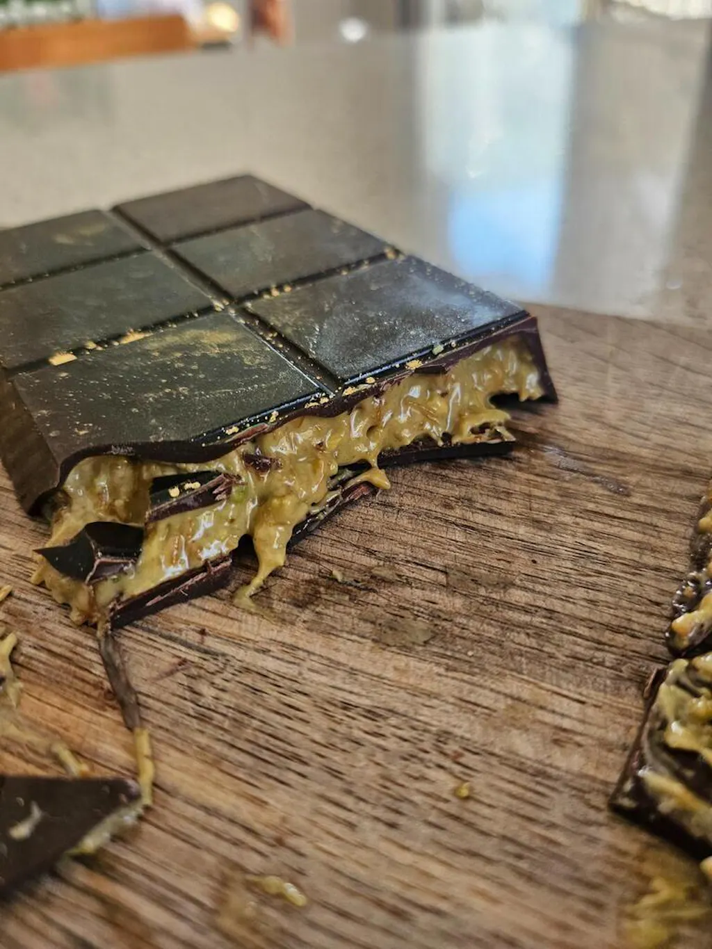 I’ve tried couple of dubai chocolate but this one tops it. It is bit soft in room temperature so i recommend freezing the whole bar and breaking off little pieces as you need. I finished a whole bar in two days…I’d definitely re-order!