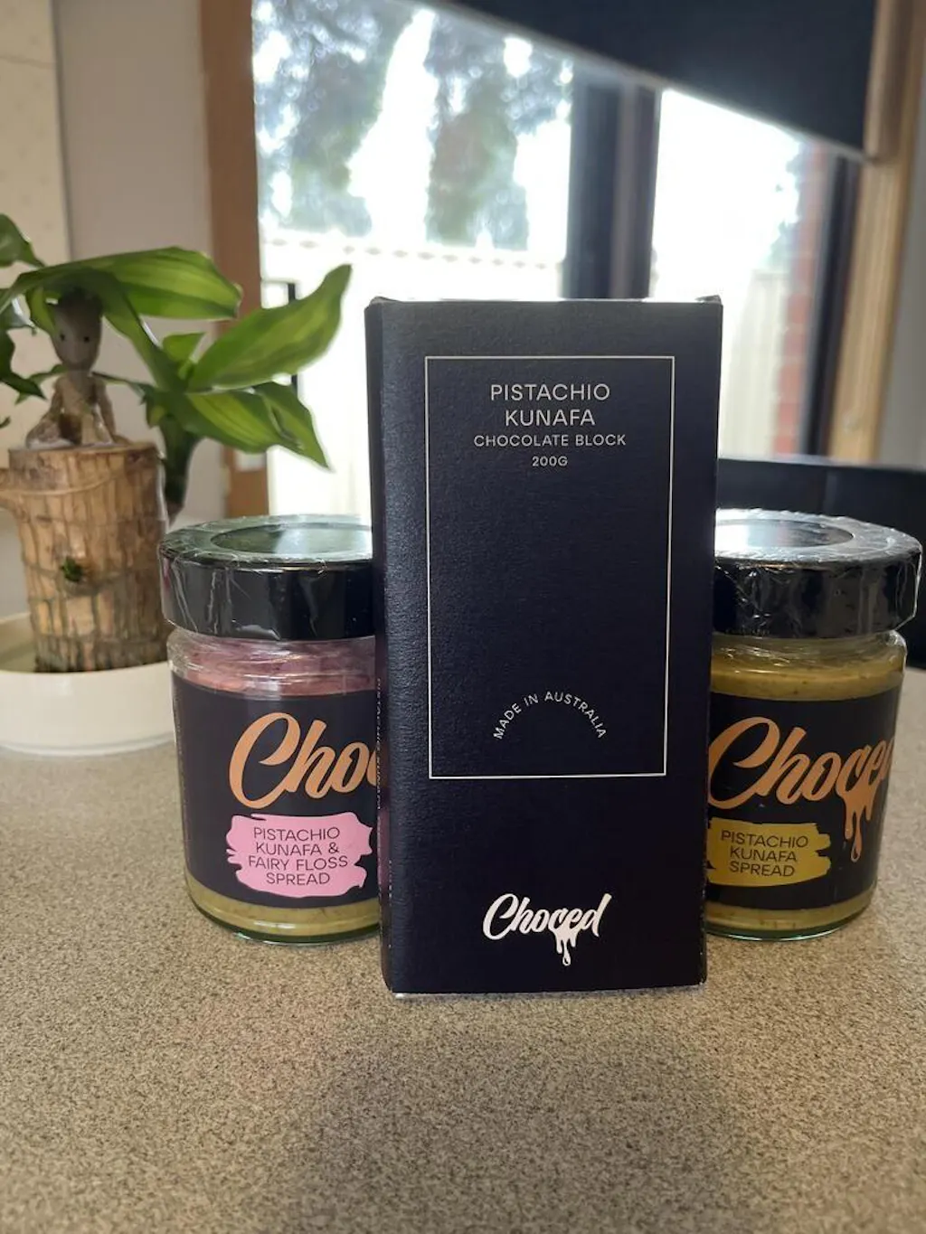 Rich, buttery pistachio, delicate flakes of golden kunafa, and smooth chocolate cream come together in a spread that’s both decadent and addictive.